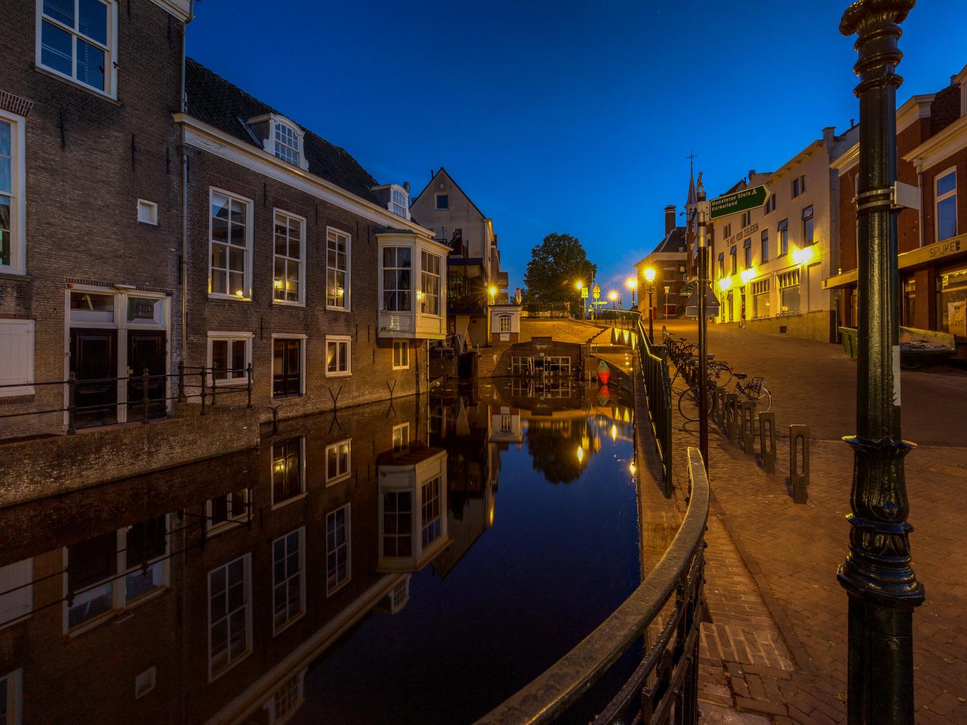 Wallpaper Canal houses at night, Netherlands