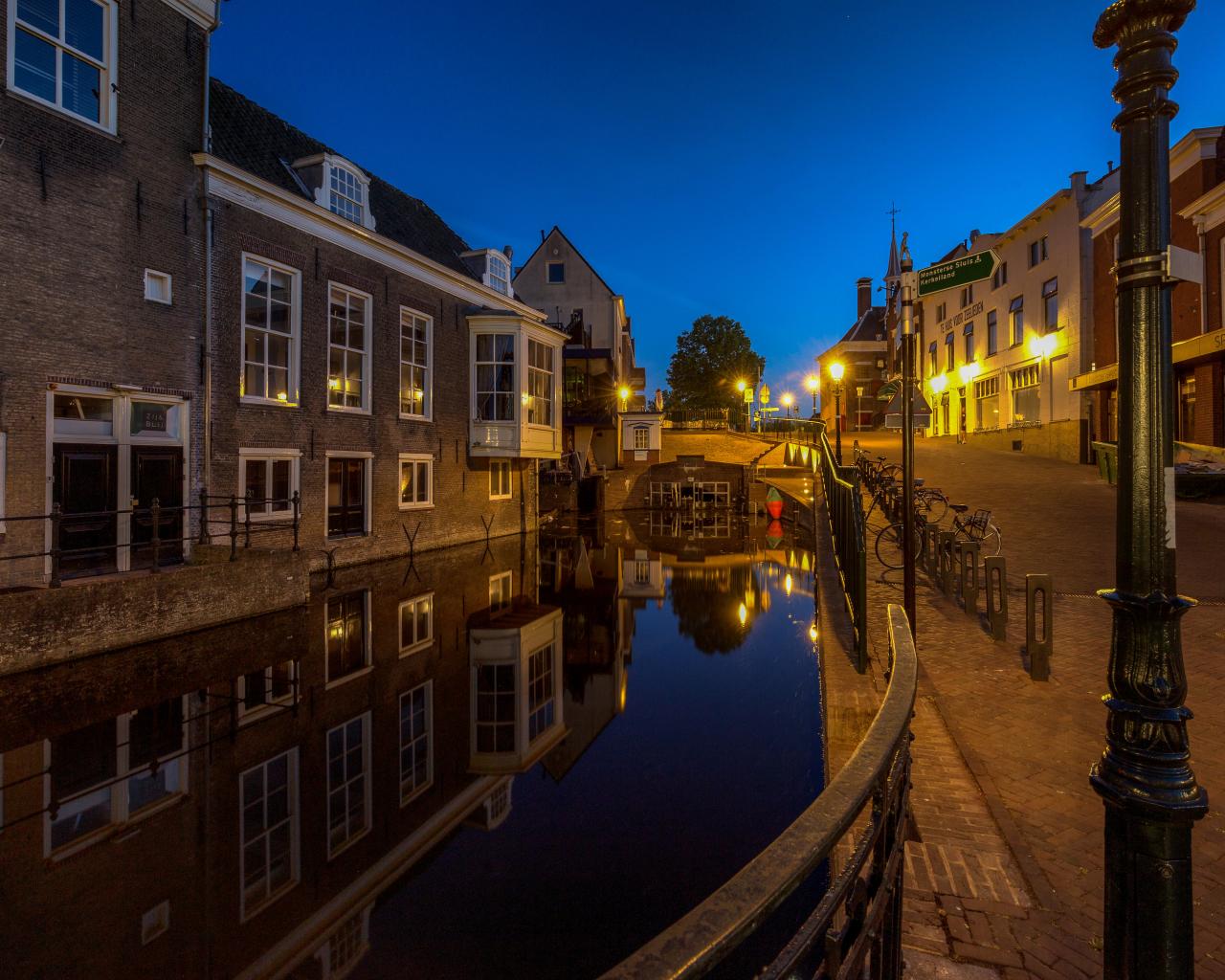 Wallpaper Canal houses at night, Netherlands