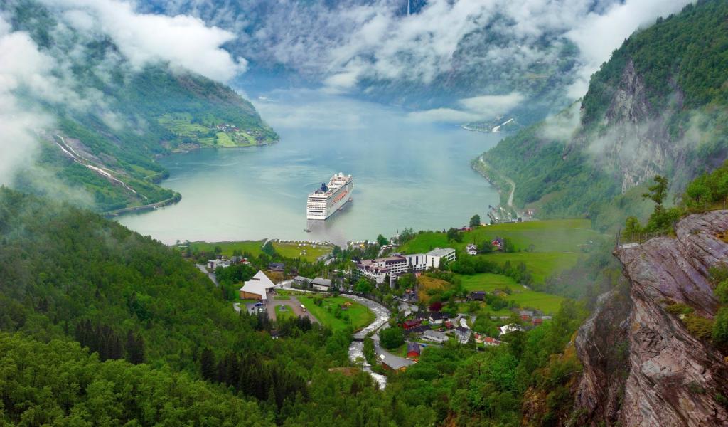 Wallpaper Cruise ship in the coastal village in Norway