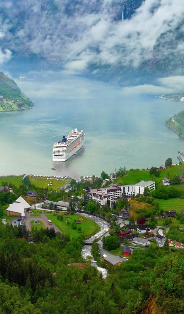 Wallpaper Cruise ship in the coastal village in Norway