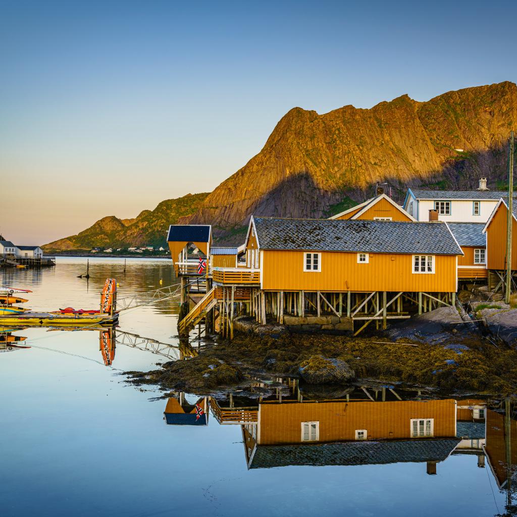 Wallpaper Stilt trees on the Lofoten island by the mountains, Norway