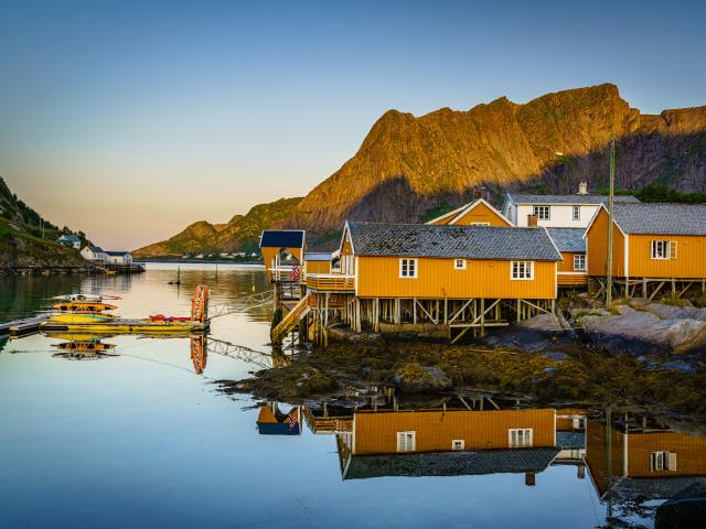 Wallpaper Stilt trees on the Lofoten island by the mountains, Norway