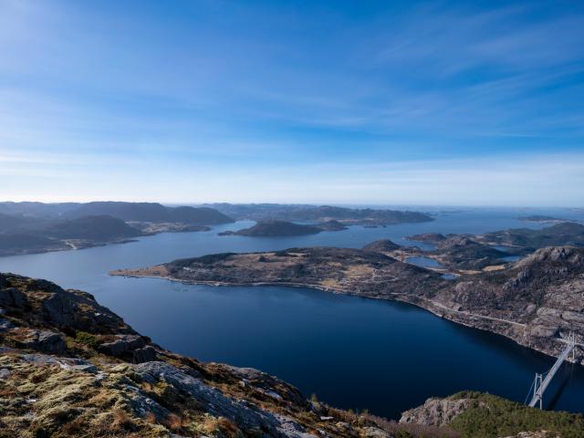 Wallpaper Beautiful view of the fjord under the blue sky, Norway