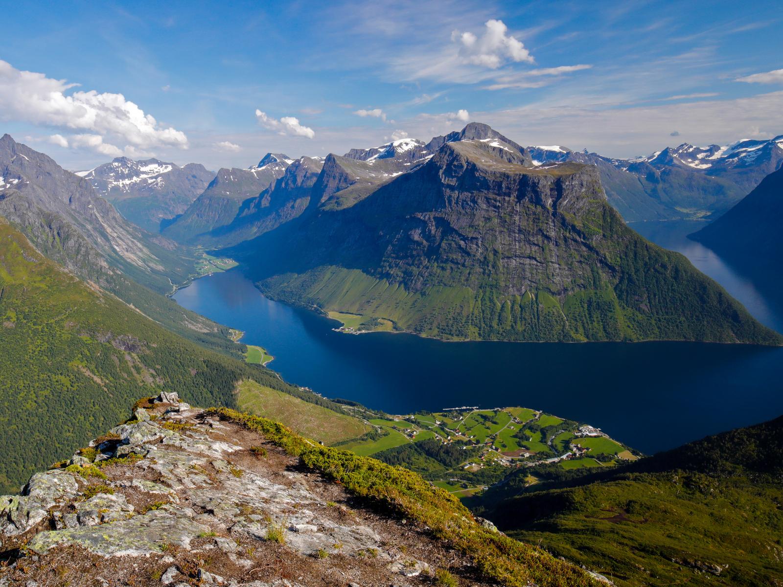 Wallpaper Beautiful view of the green mountains of the fjord, Norway