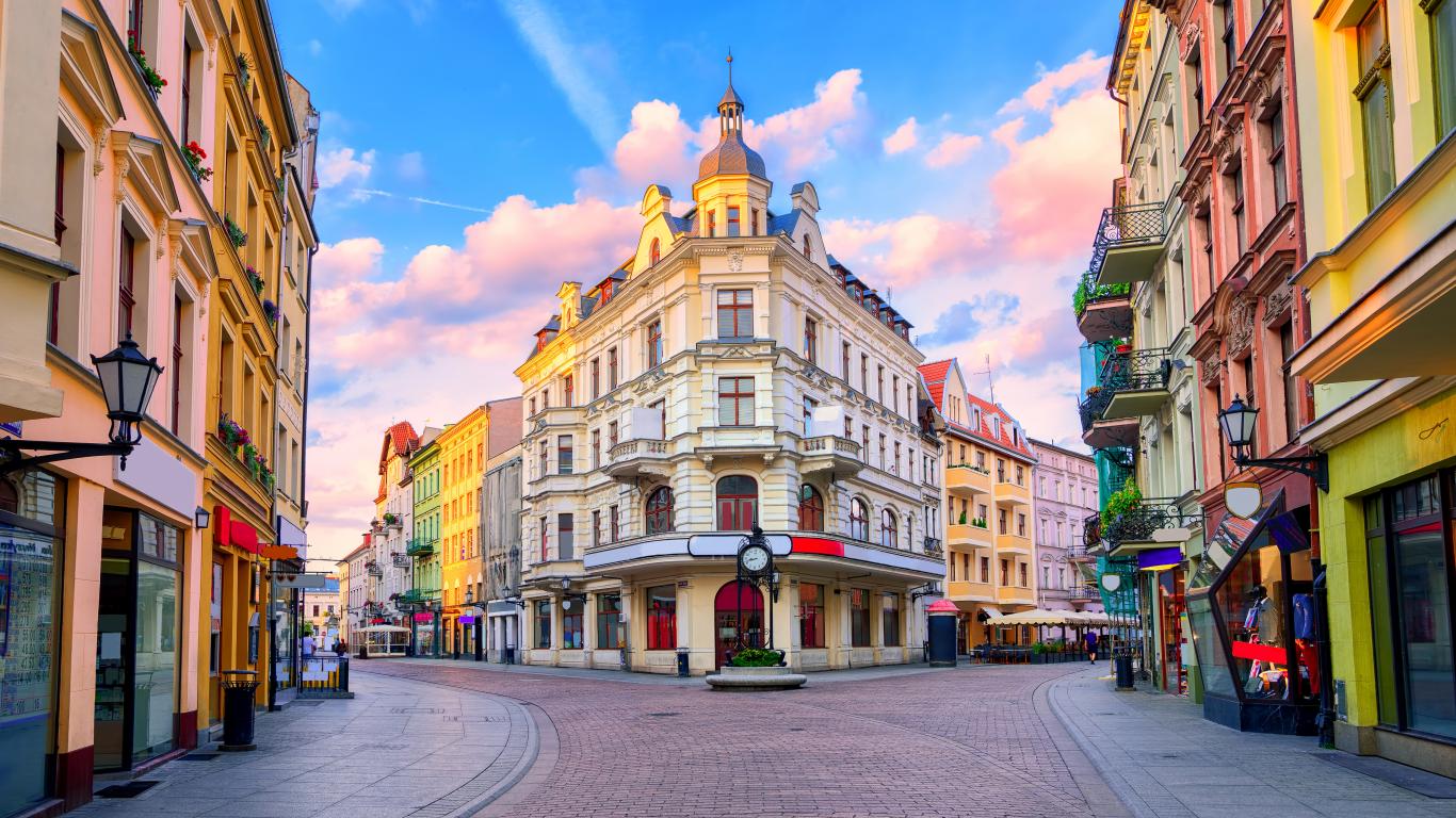 Wallpaper Beautiful houses on the street in the city of Torun, Poland