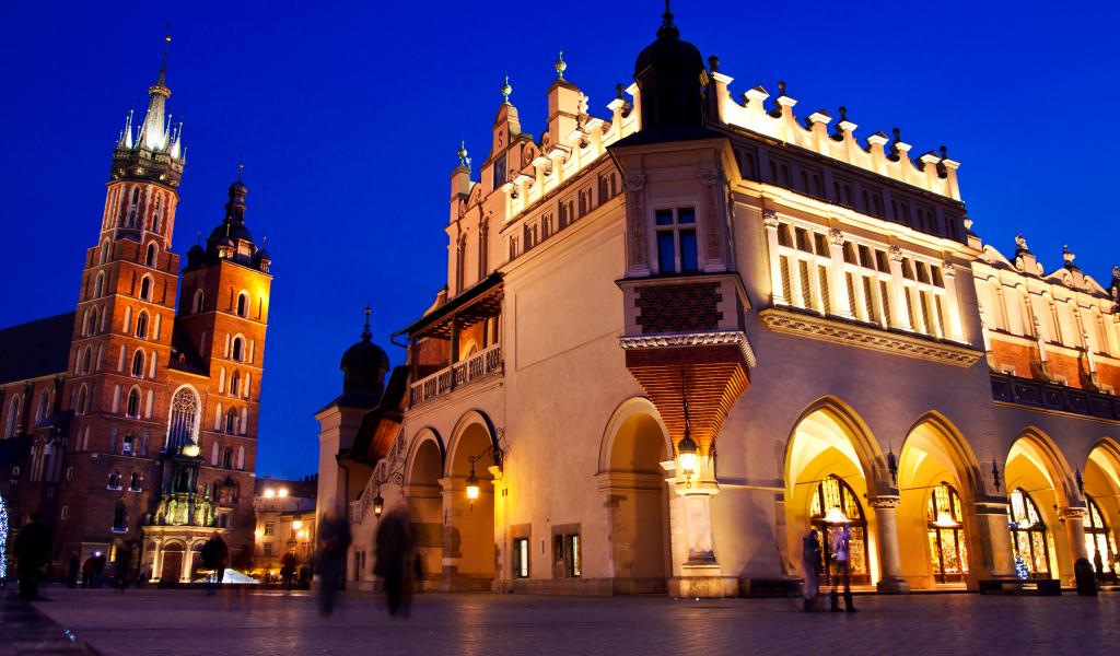 Wallpaper Ancient Mary Church in the evening, Krakow. Poland