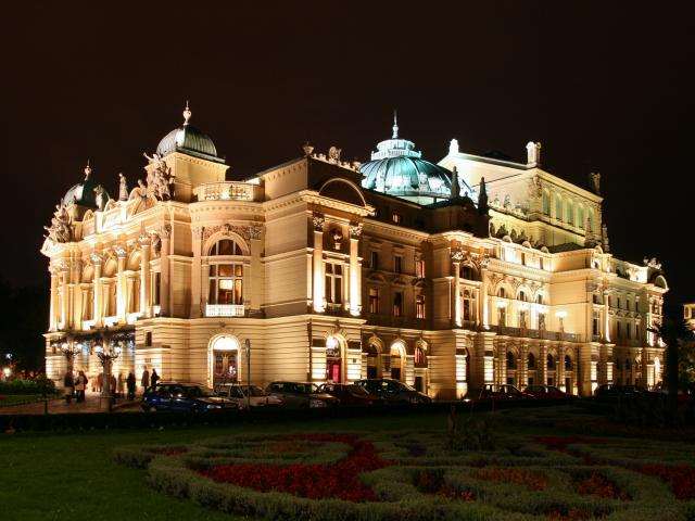 Wallpaper Theater named Juliusz Slowacki in the evening, Krakow. Poland