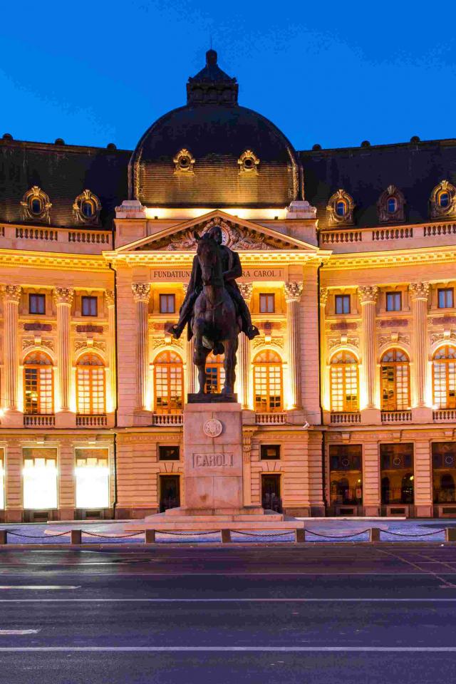 Wallpaper Monument in front of the Central Library, Bucharest, Romania