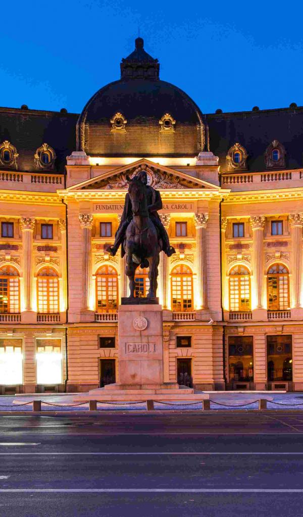 Wallpaper Monument in front of the Central Library, Bucharest, Romania