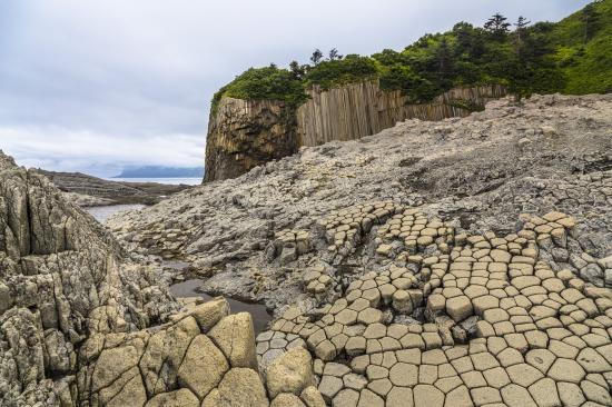 Wallpaper Cobbles Cape columnar, the Kurile Islands. Russia