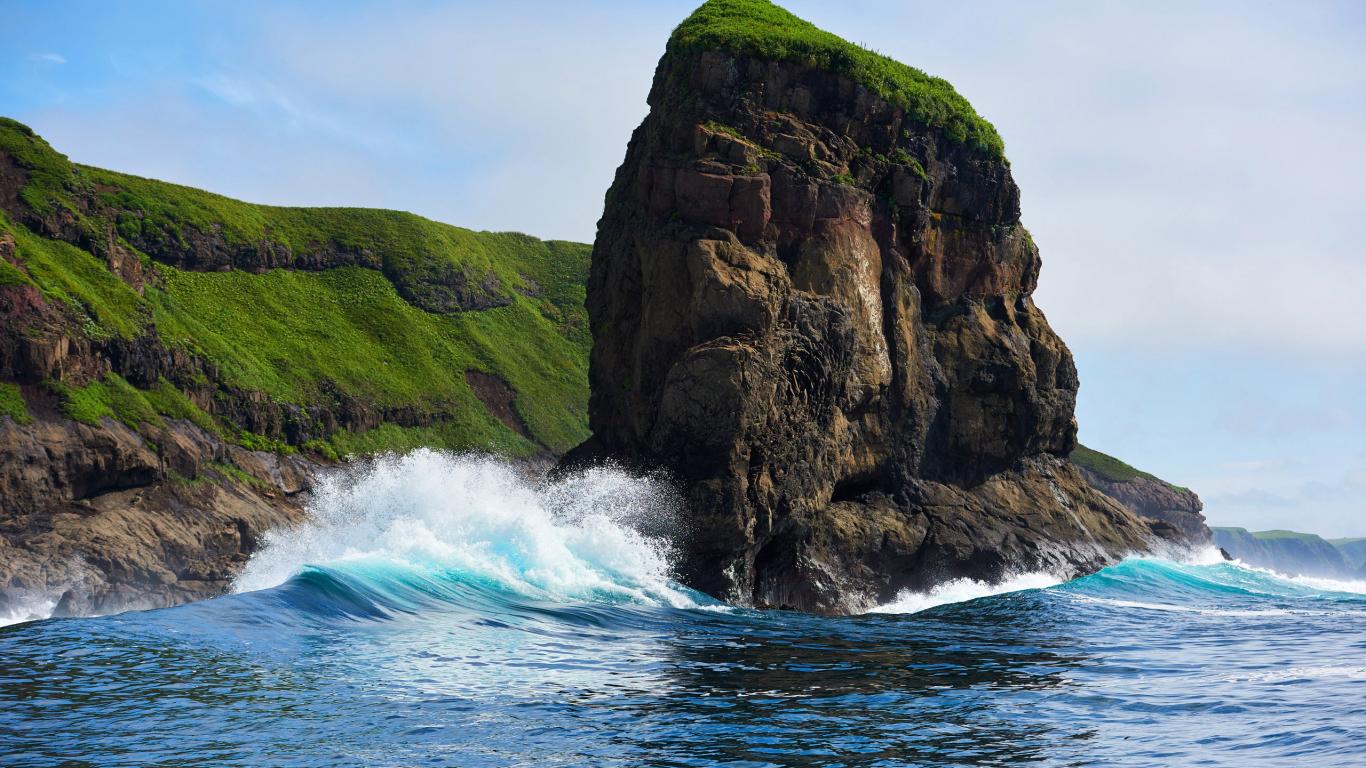 Wallpaper Rock on Shikotan Island, the Kuril Islands. Russia