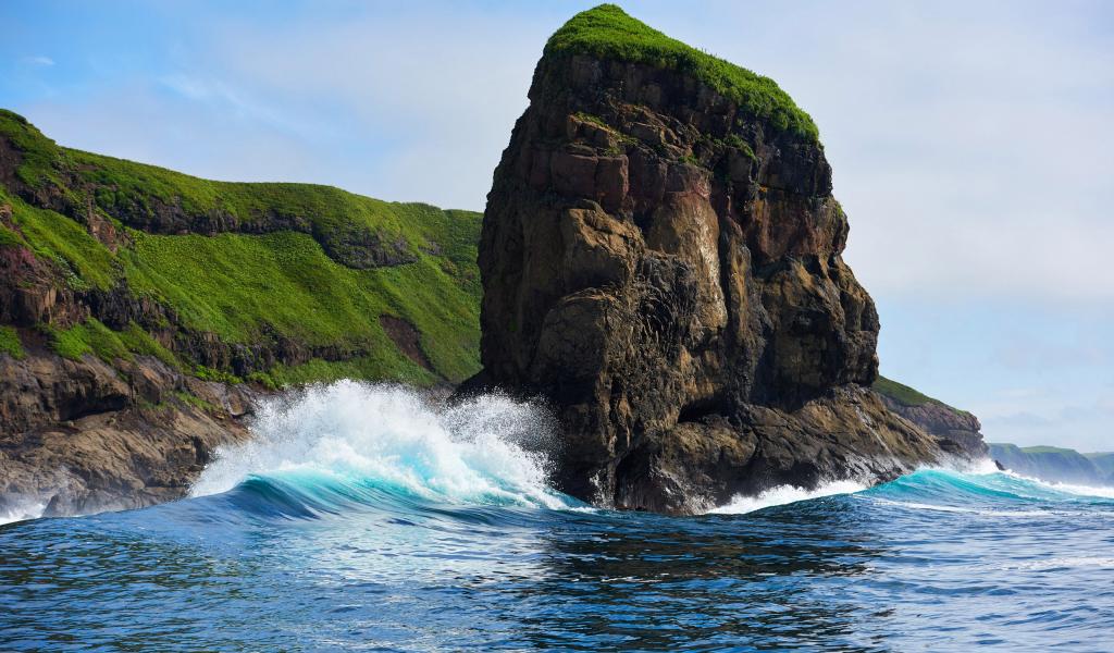 Wallpaper Rock on Shikotan Island, the Kuril Islands. Russia