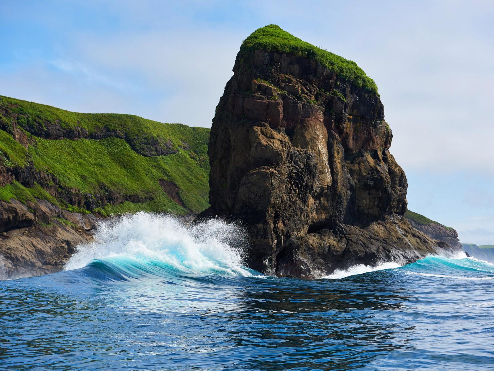 Wallpaper Rock on Shikotan Island, the Kuril Islands. Russia