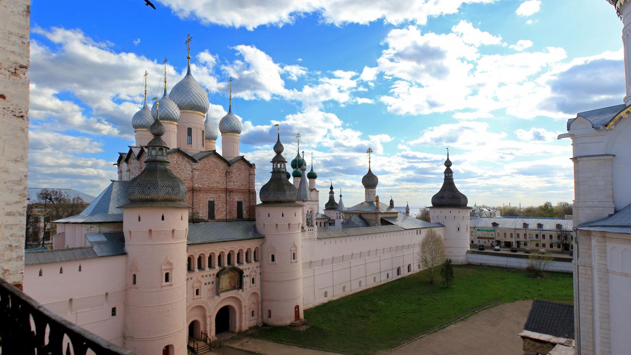 Wallpaper View of the Rostov Kremlin under the beautiful sky, Russia