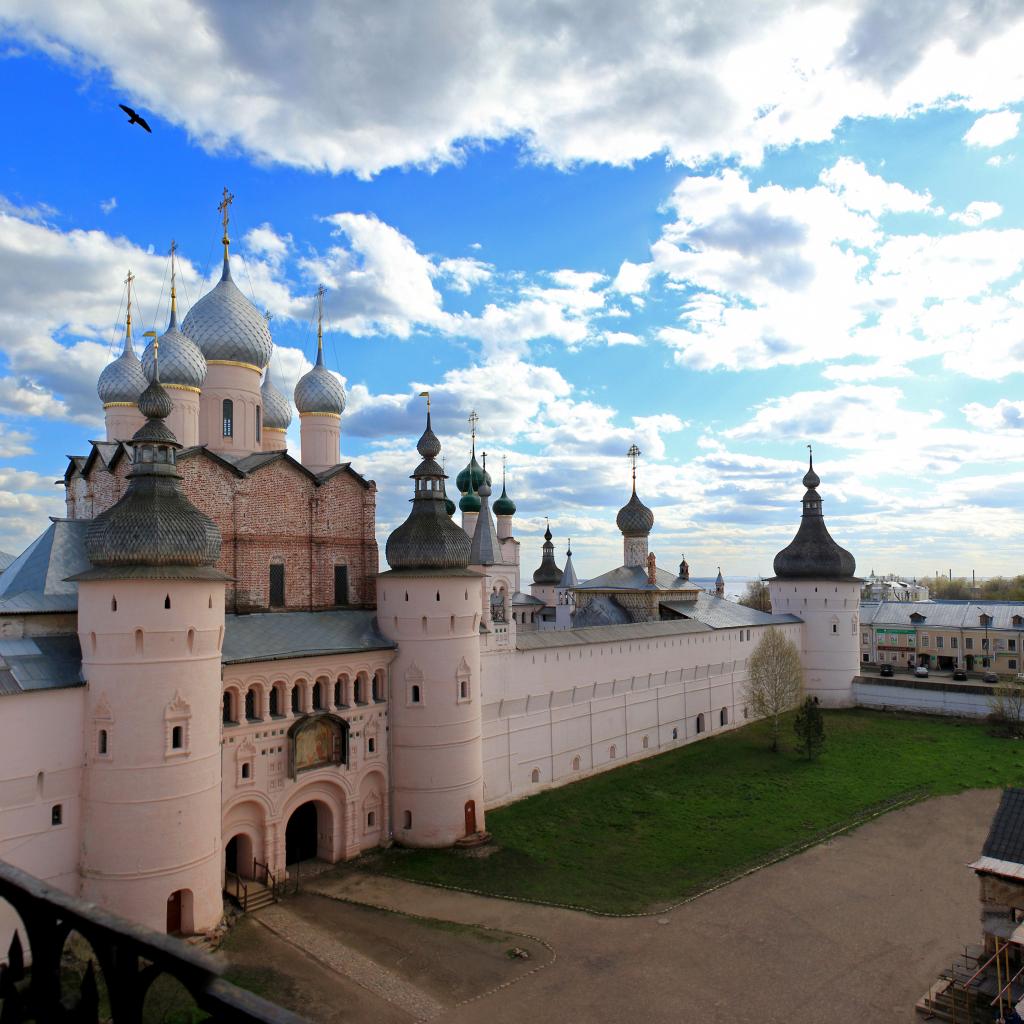 Wallpaper View of the Rostov Kremlin under the beautiful sky, Russia
