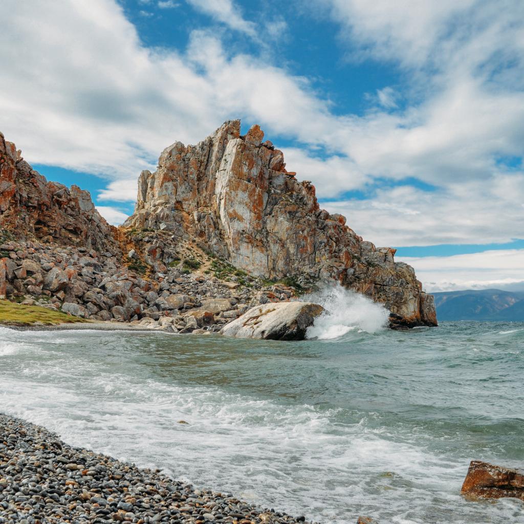 Wallpaper Rocks under the blue sky on the island of Olkhon, Russia