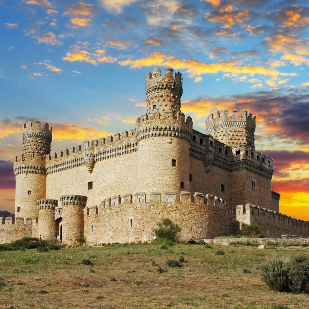 Wallpaper Manzanares el Real Castle at sunset, Spain