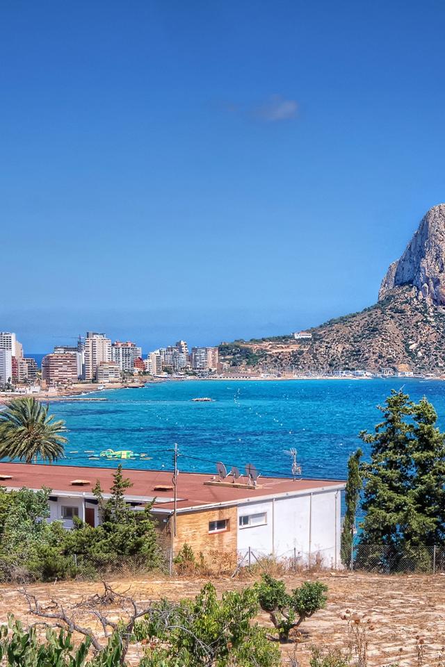 Wallpaper Houses on the coast of Spain under a blue sky