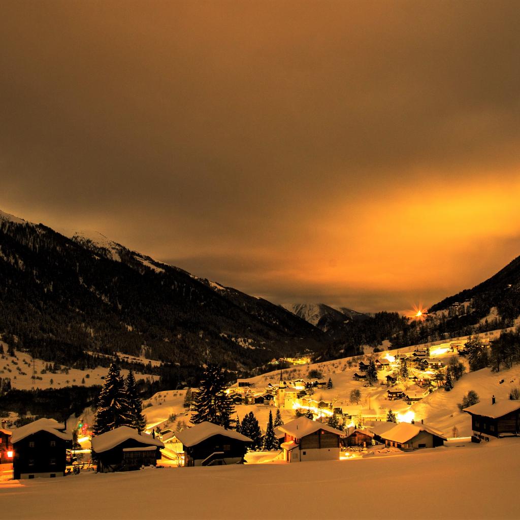 Wallpaper Winter night in a mountainous city, Switzerland