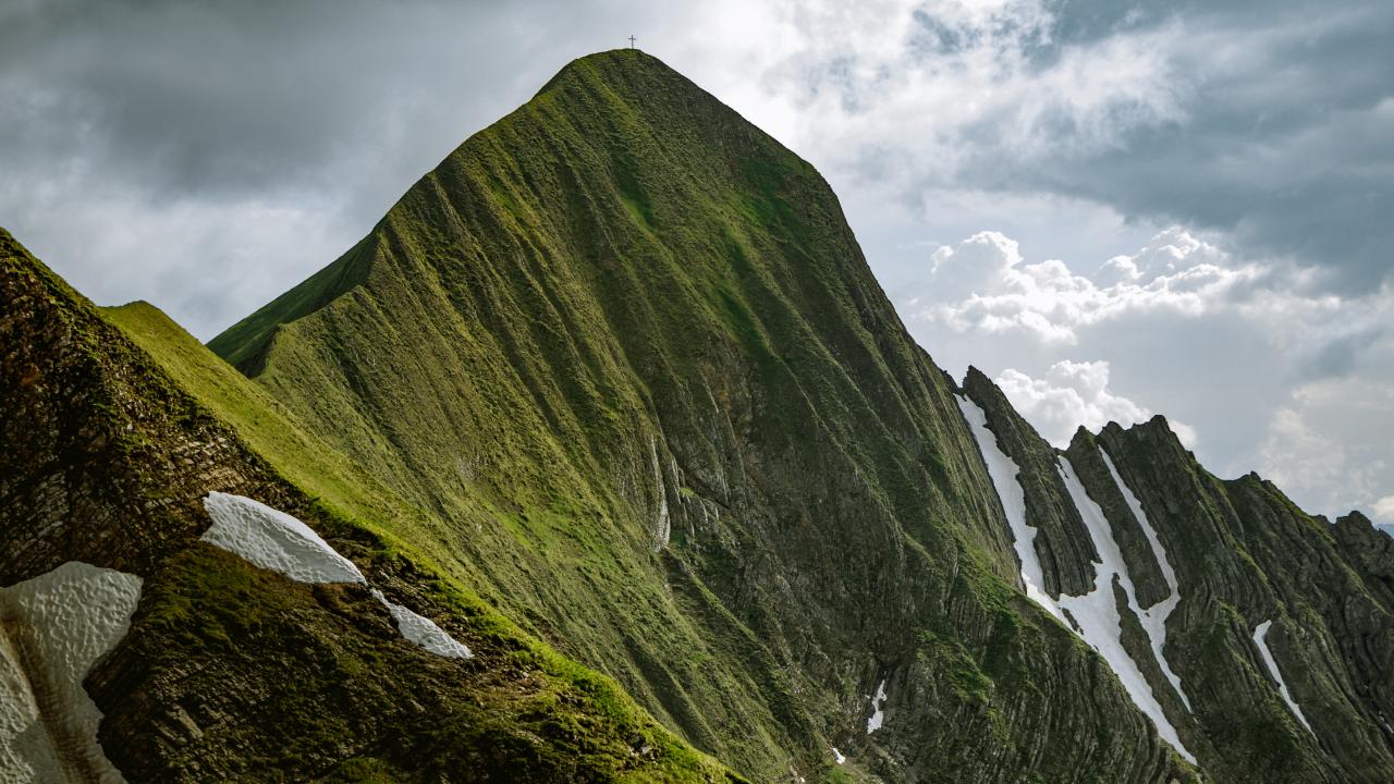 Wallpaper Mountains under white clouds near the lake in Switzerland