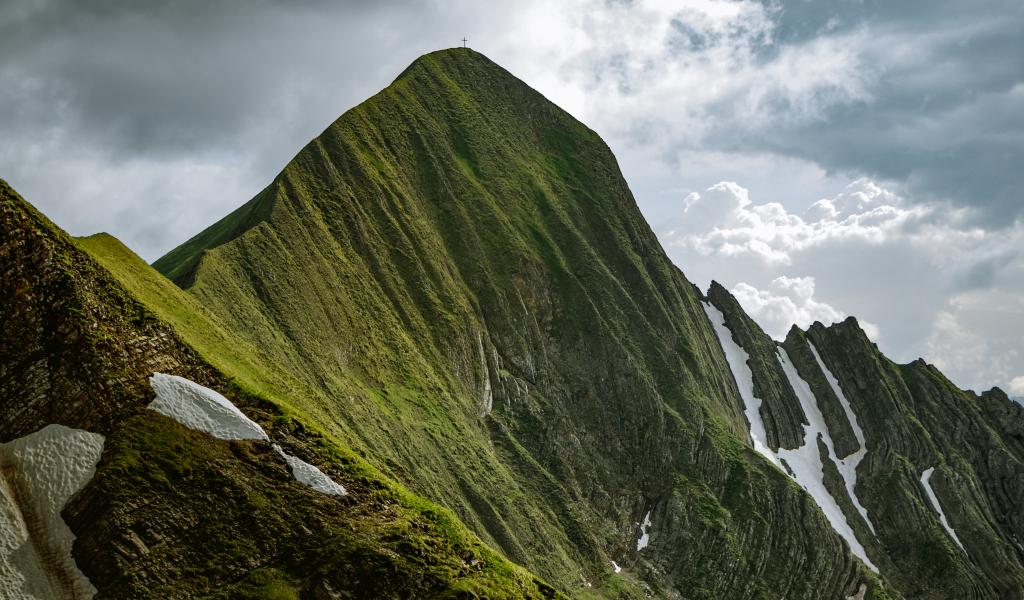 Wallpaper Mountains under white clouds near the lake in Switzerland