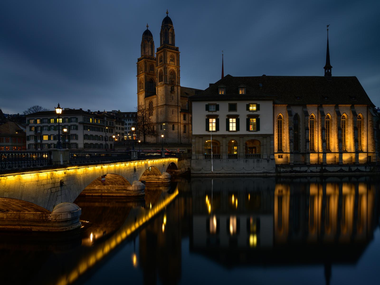 Wallpaper Big house by the river at night, Zurich, Switzerland