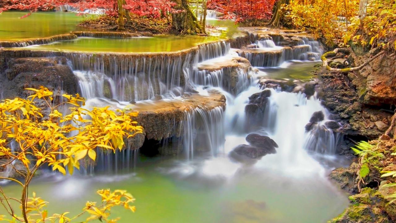 Wallpaper Stepped waterfall in tropical Thailand