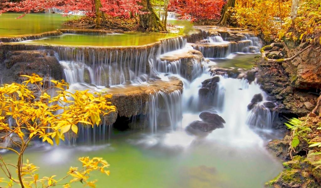Wallpaper Stepped waterfall in tropical Thailand
