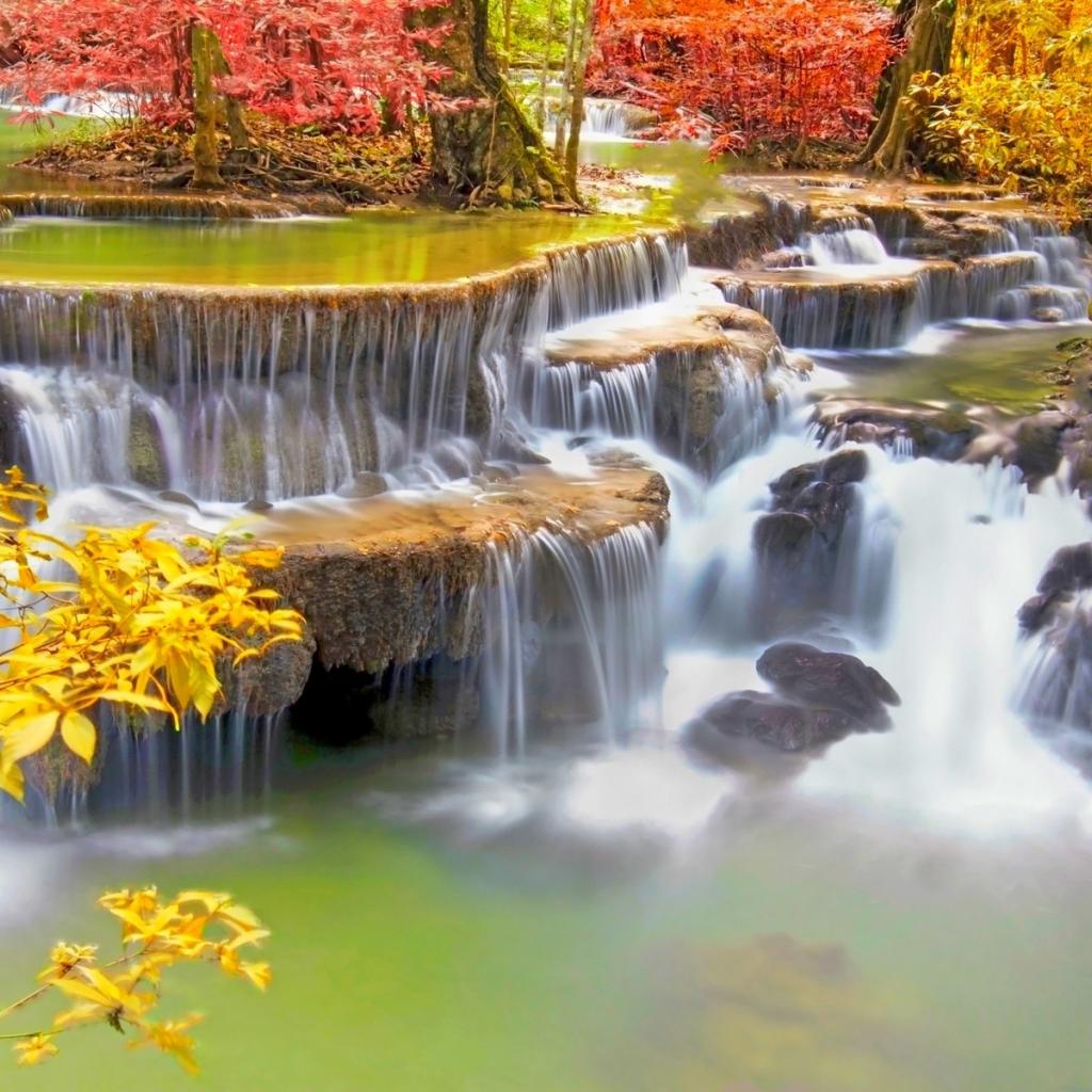 Wallpaper Stepped waterfall in tropical Thailand