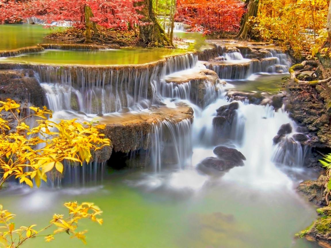 Wallpaper Stepped waterfall in tropical Thailand