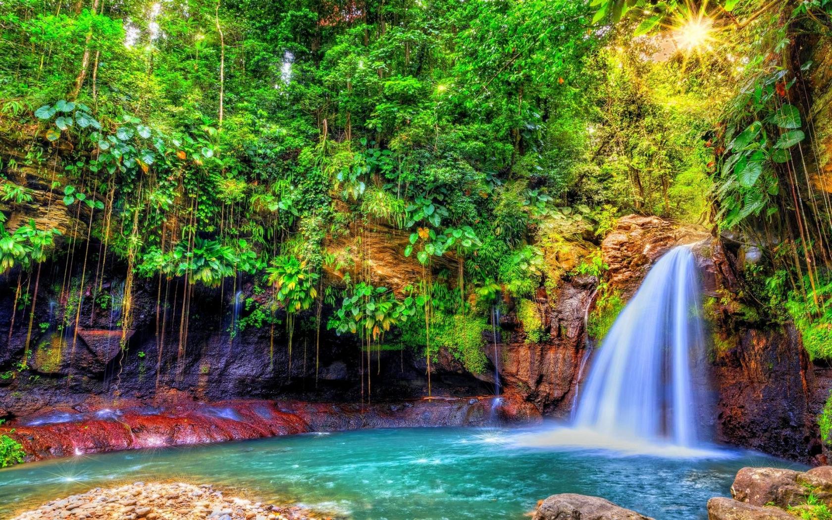 Wallpaper Waterfall in the jungle island of Guadeloupe