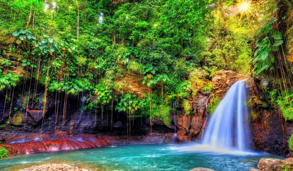 Wallpaper Waterfall in the jungle island of Guadeloupe