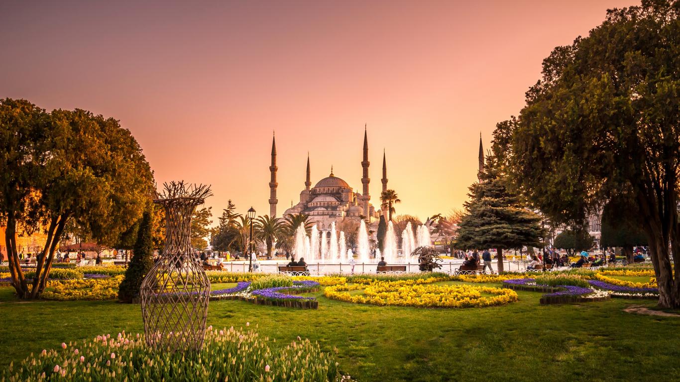Wallpaper Blue Mosque with a beautiful running fountain, Istanbul. Turkey