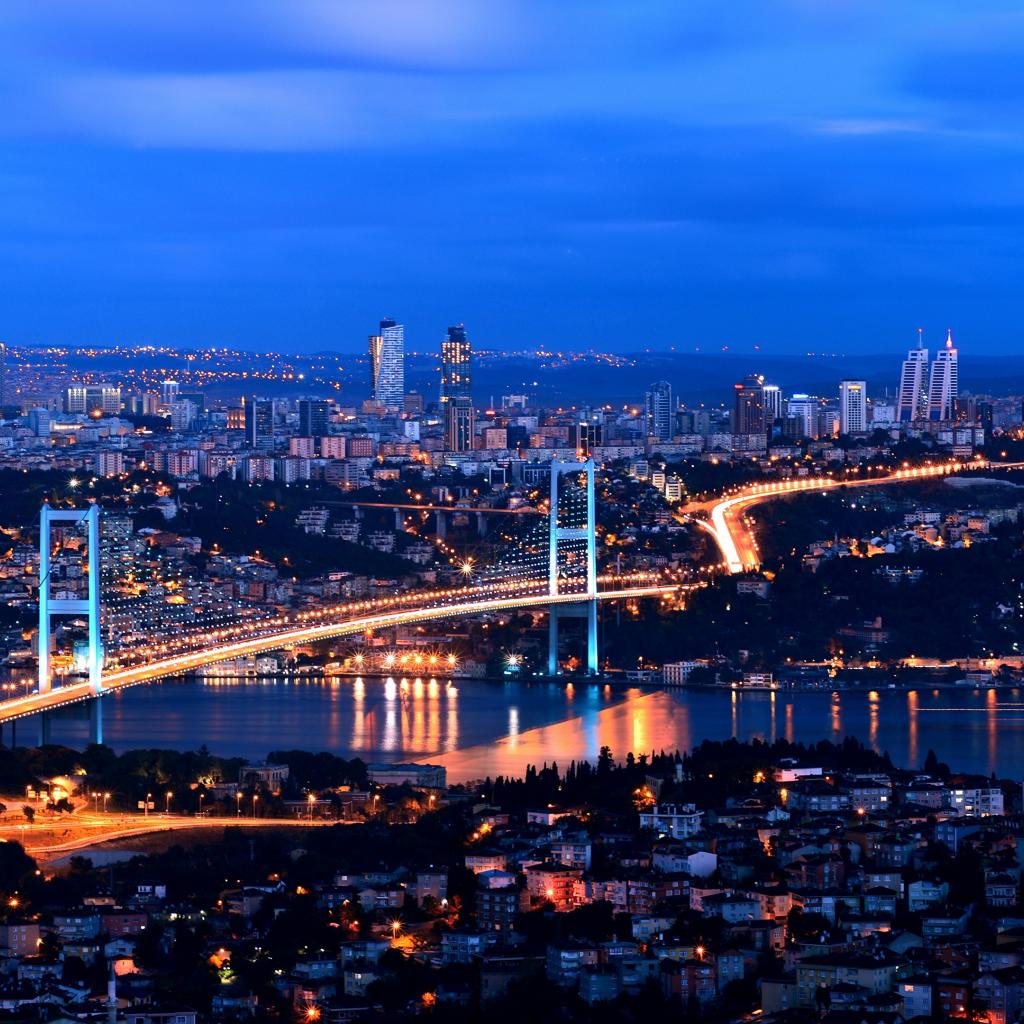 Wallpaper Panorama of the night city of Istanbul, Turkey