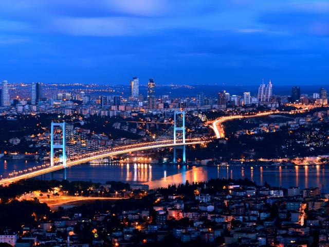 Wallpaper Panorama of the night city of Istanbul, Turkey