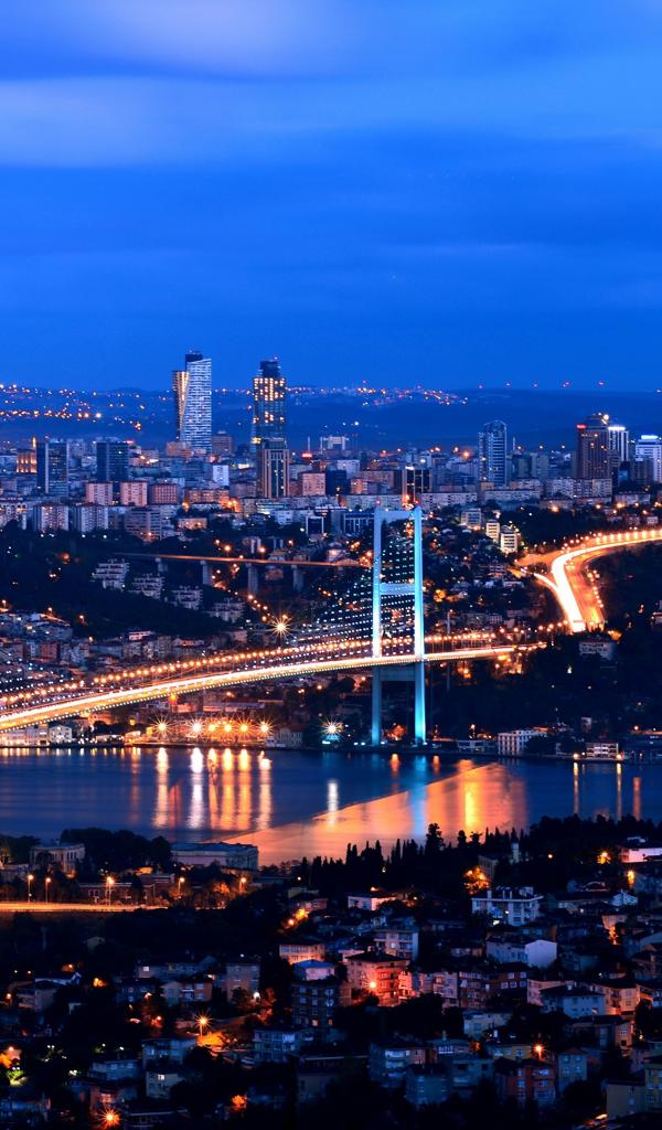 Wallpaper Panorama of the night city of Istanbul, Turkey