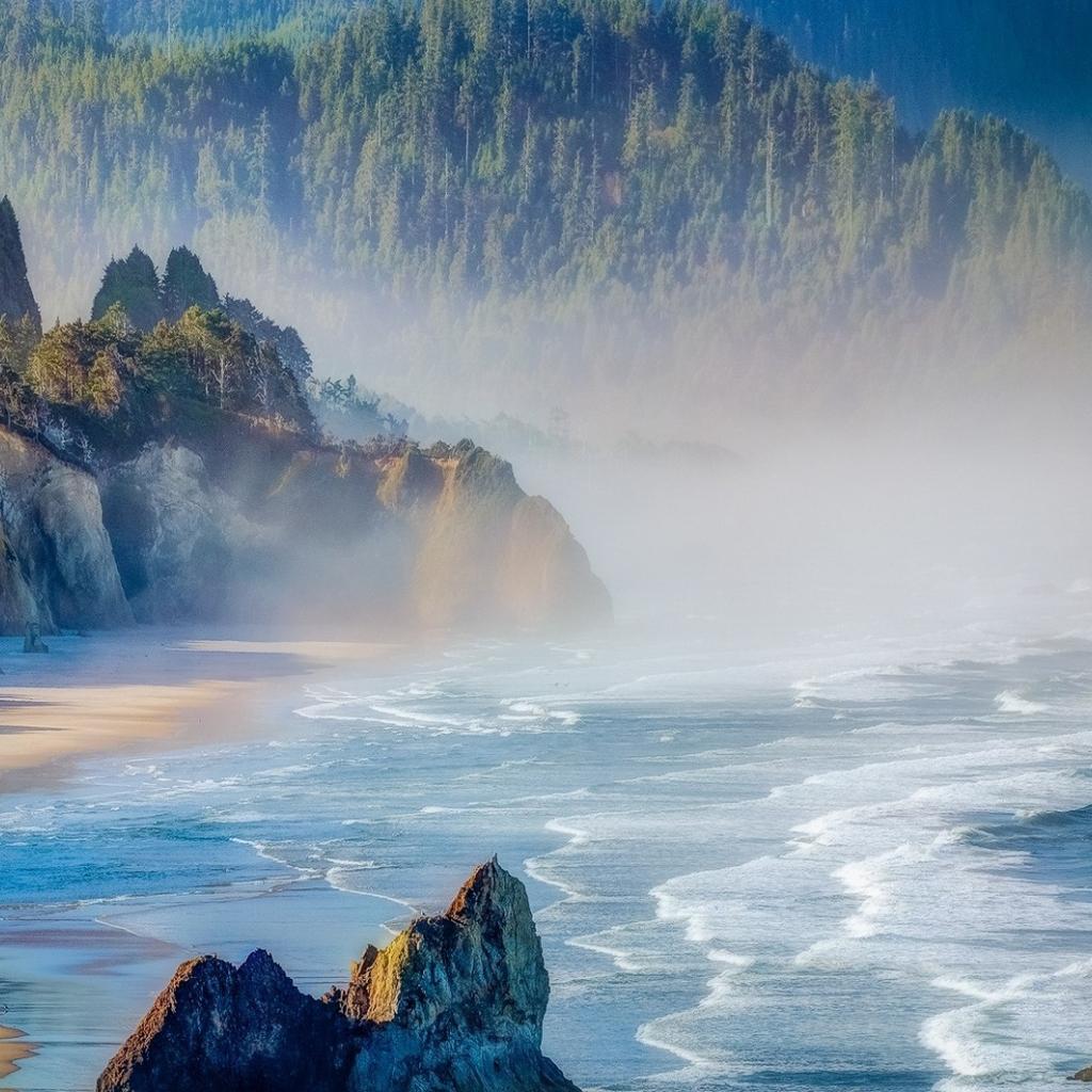 Wallpaper Wooded mountains on the banks of Oregon