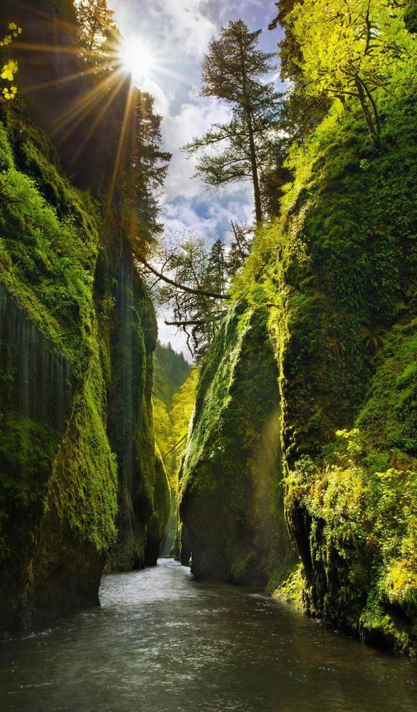 Wallpaper River between steep cliffs in Oregon