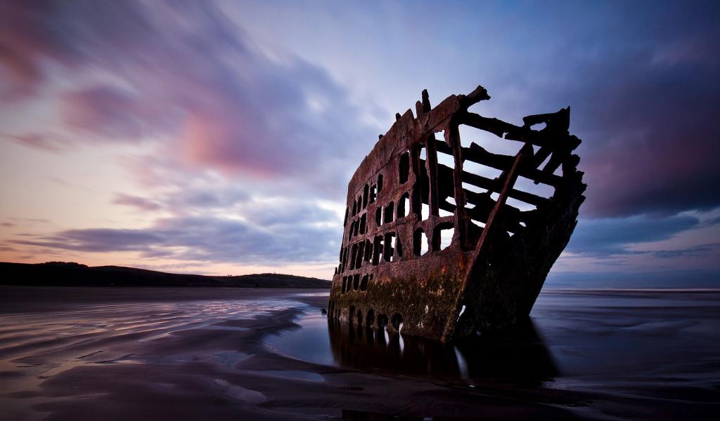 Wallpaper Rusty skeleton of the ship near the shore, Oregon