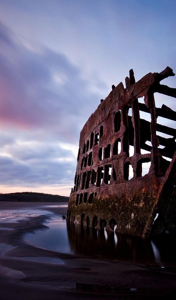 Wallpaper Rusty skeleton of the ship near the shore, Oregon