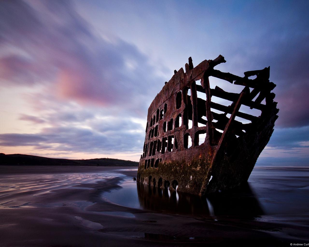 Wallpaper Rusty skeleton of the ship near the shore, Oregon