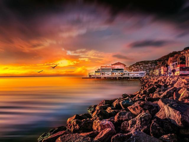 Wallpaper Rocky coast at sunset, California