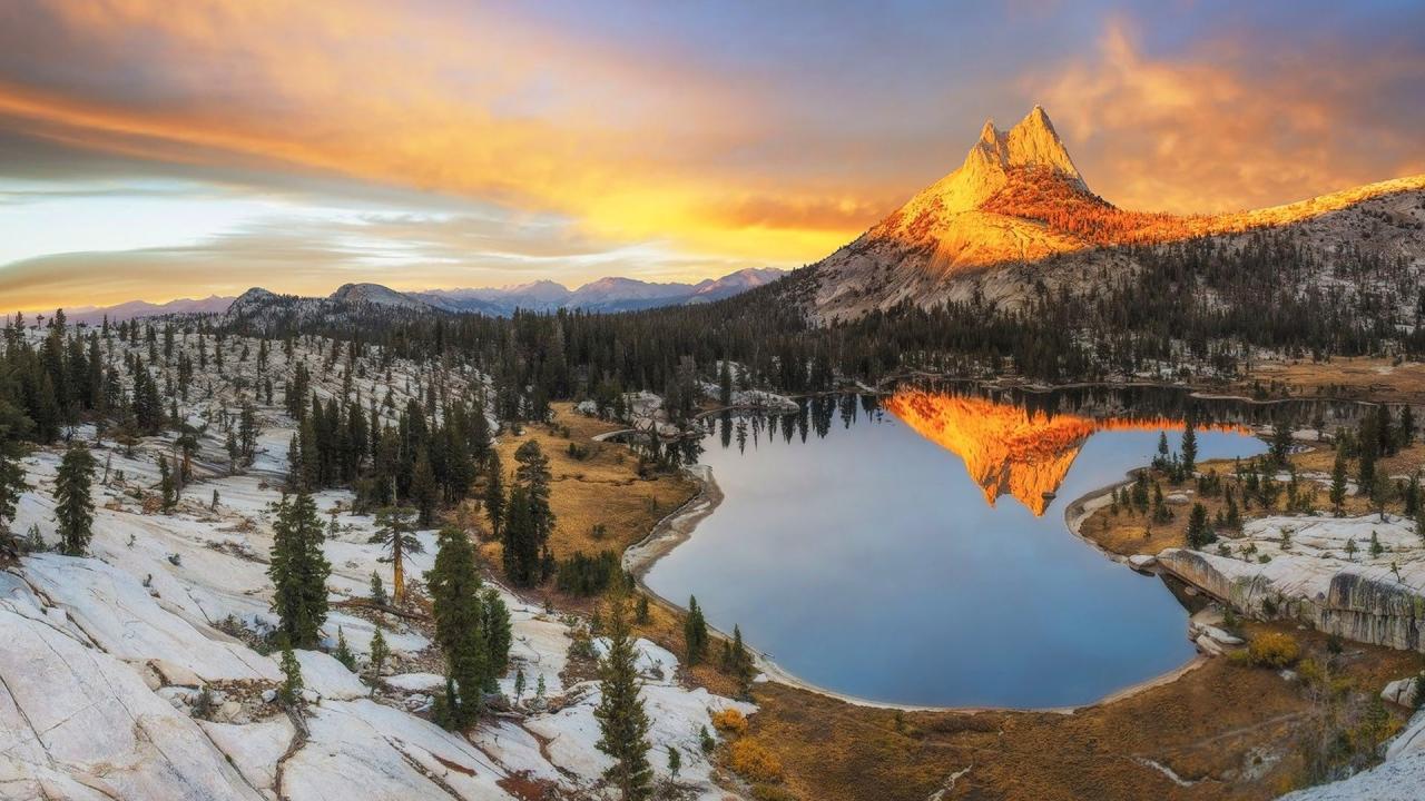 Wallpaper Golden Rock over the lake, California