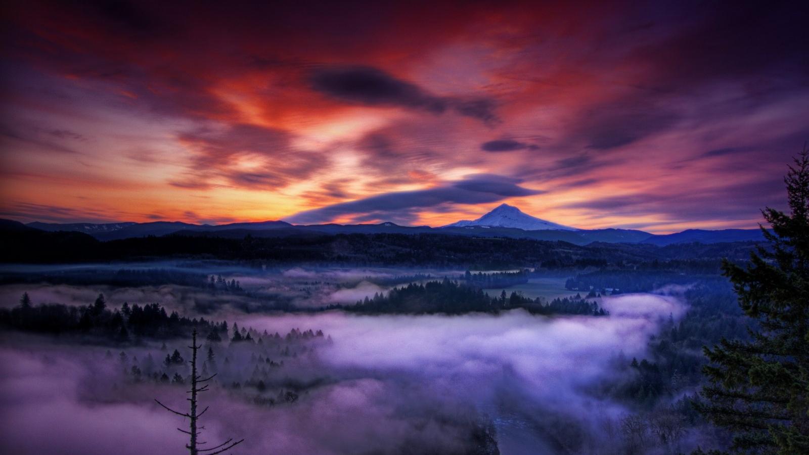 Wallpaper Misty valley at sunset, Oregon