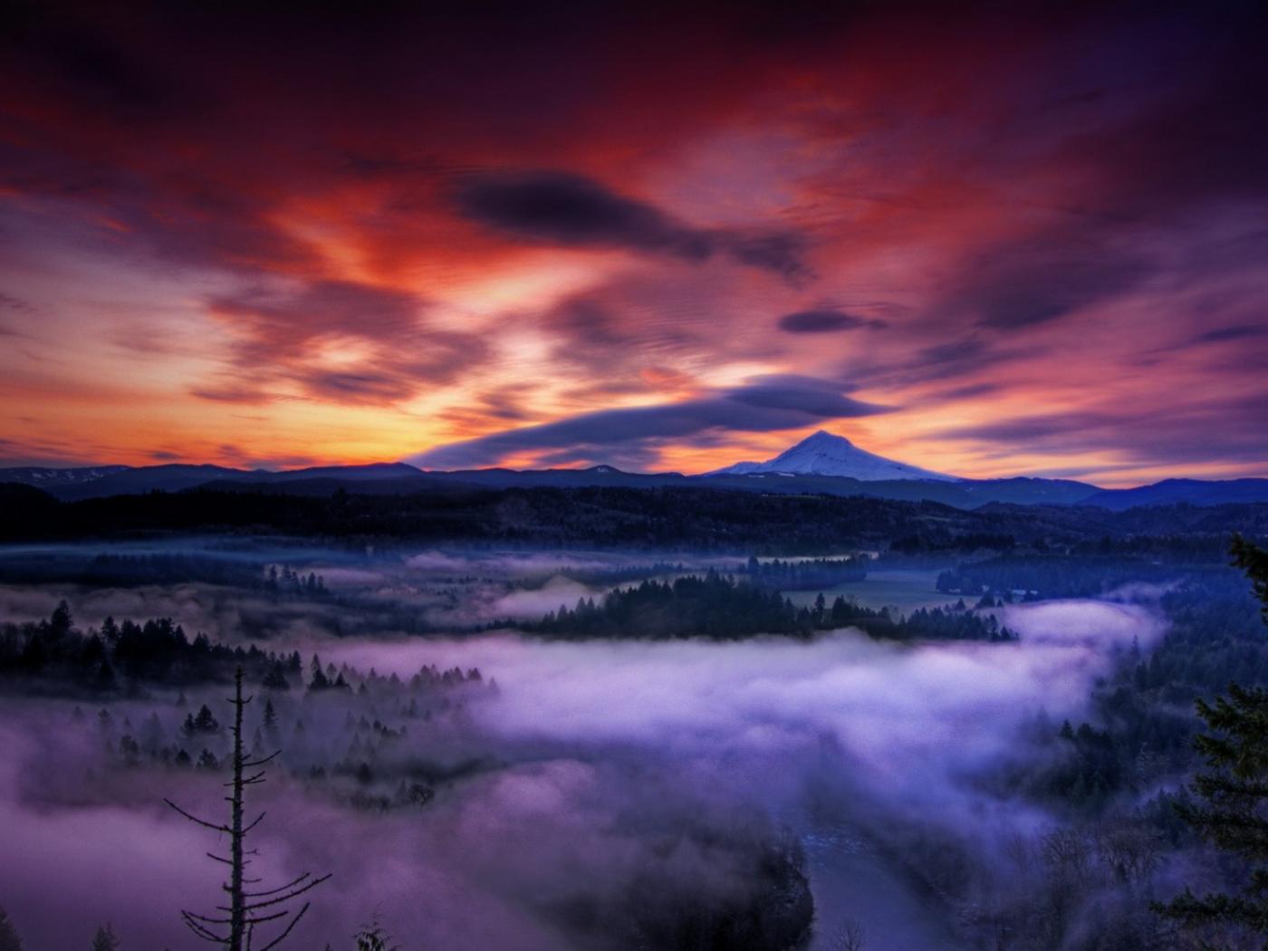 Wallpaper Misty valley at sunset, Oregon