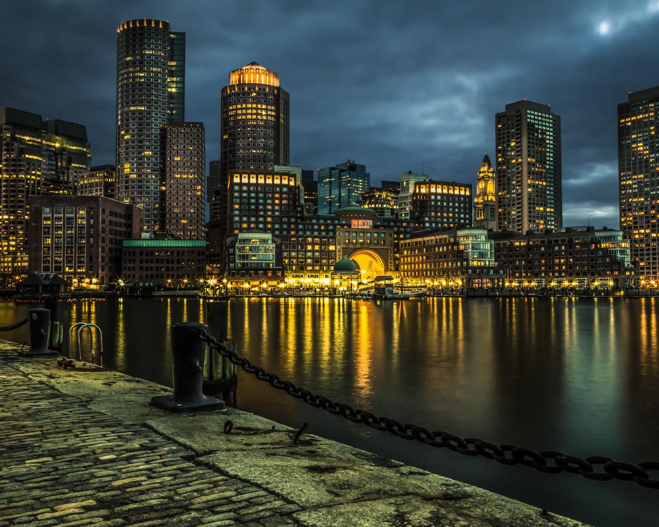 Wallpaper River vessels at the pier against the background of the skyscrapers of the city of Boston. USA