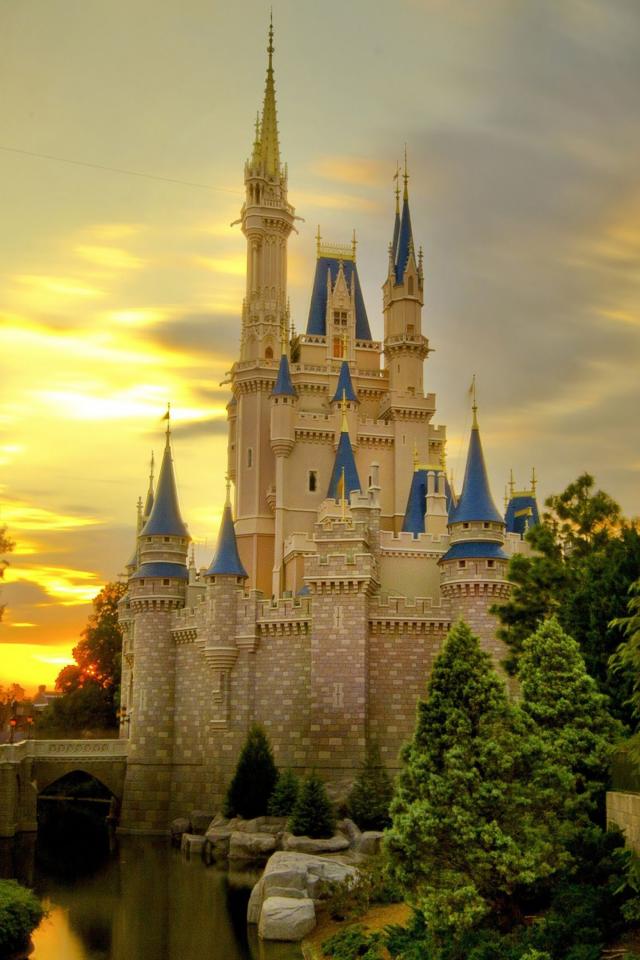 Wallpaper Cinderella Castle at sunset, Disneyland, California. USA