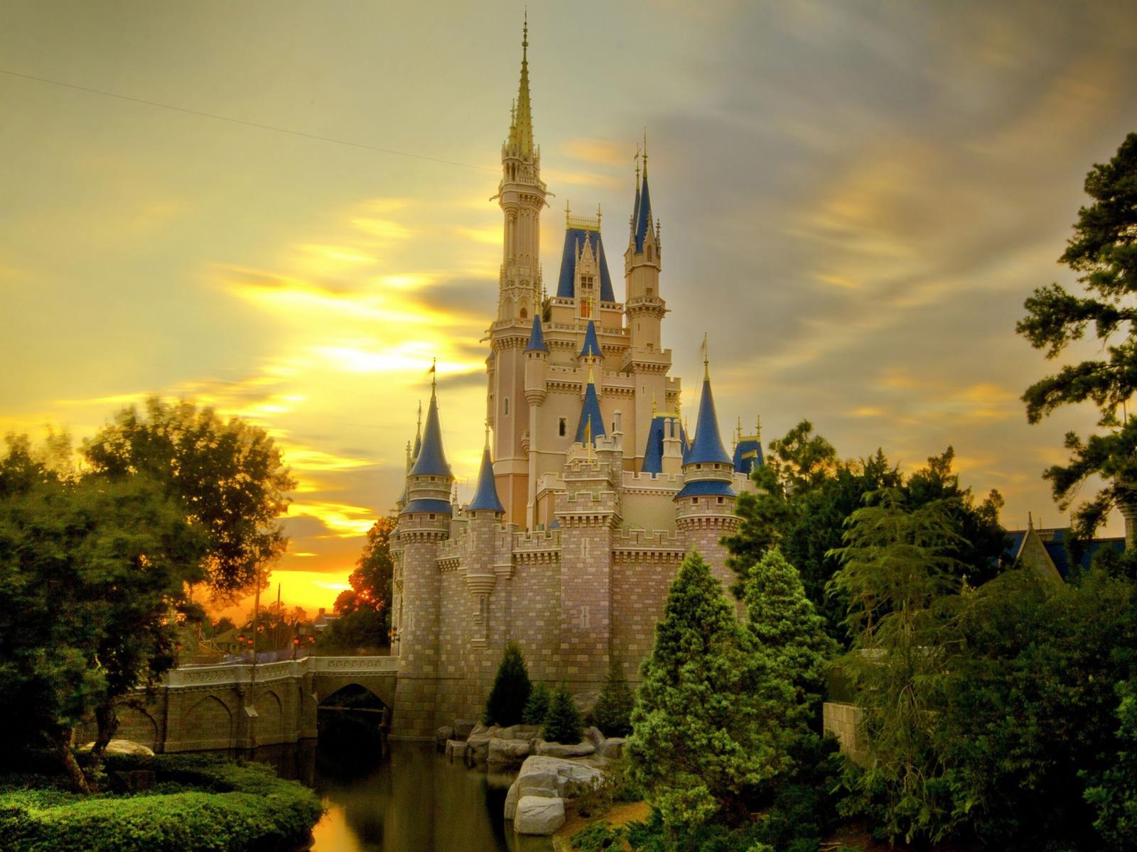 Wallpaper Cinderella Castle at sunset, Disneyland, California. USA