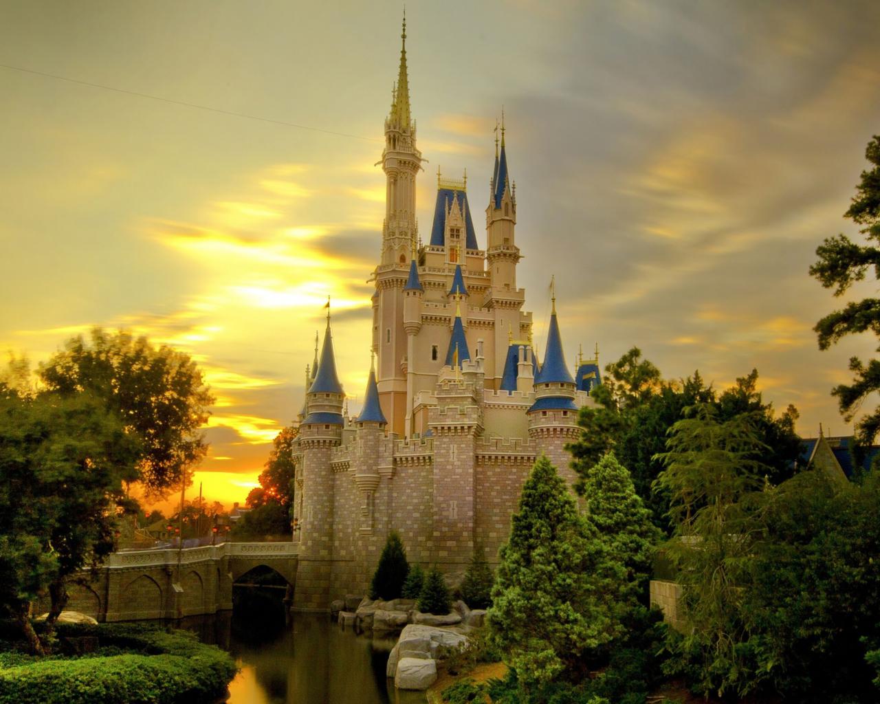 Wallpaper Cinderella Castle at sunset, Disneyland, California. USA