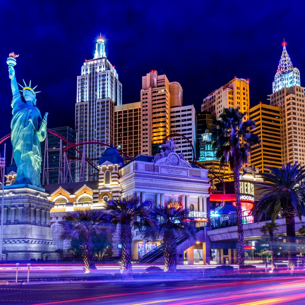 Wallpaper Houses and a statue of liberty in the night Las Vegas, USA